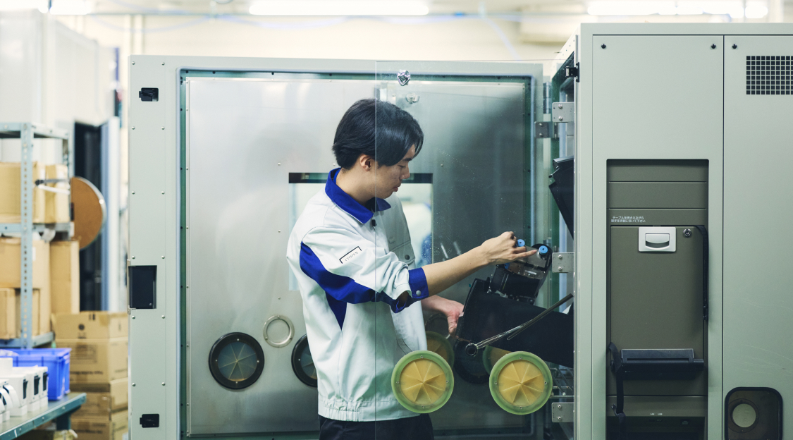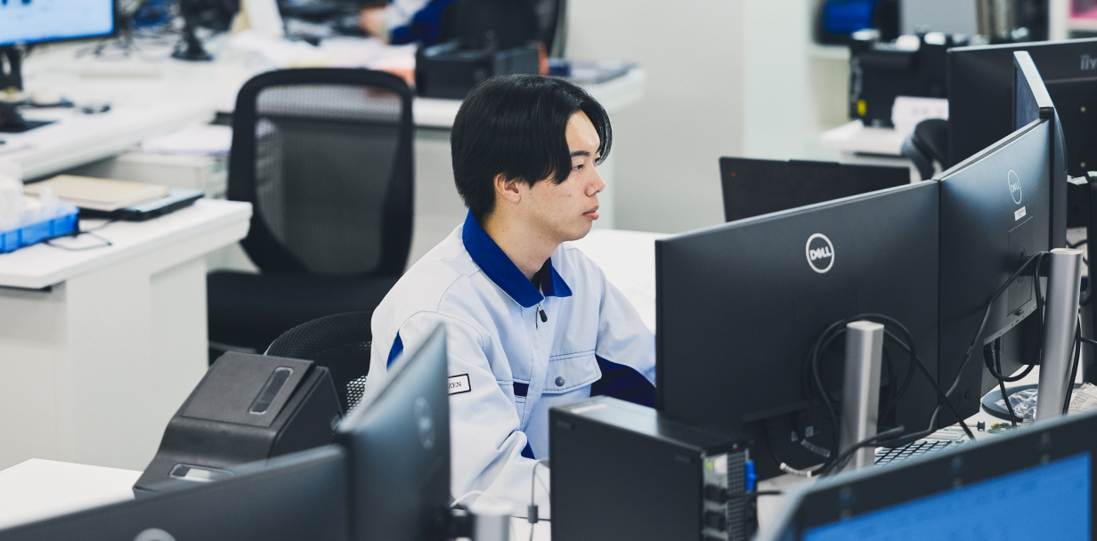 M.I.さんは同じ部署の後輩で、新入社員の頃は私がOJTの指導を担当していました。現在は別のプロジェクトを担当していますが、今でもよく相談を受けたり、雑談を交えながらお互いの仕事について話したりと、気軽にコミュニケーションを取っています。初対面の時は大人しく真面目な印象でしたが、実はとても話しやすい人です。物事を論理的に考え、積極的に質問してくれる姿勢には、私自身も学ぶことが多くあります。入社3年目にして新製品開発の中心を担い、後輩の指導にも携わる頼もしい存在です。これからも一緒に成長し、会社を支える製品づくりに挑戦していけたらと思っています。仕事やプライベートのことなど、何でも遠慮せず相談してくださいね!