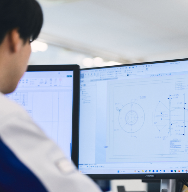 幼少期から折り紙やプラモデルなどのものづくりに親しみ、自分の手で形あるものを生み出し、人に喜んでもらえることに大きな喜びを感じていました。大学ではその関心をより専門的に深めたいと考え、機械工学を専攻。機械設計やCAD※1を用いた製図などに取り組む中で、ものづくりの奥深さや面白さを実感しました。就職活動では、「ものづくりで人を幸せにする」という軸を持ってメーカーを中心に企業を見ていたところ、シチズン・システムズと出会いました。単に製品をつくるだけでなく、「人のためにものづくりをする」という企業姿勢に深く共感し、自分もその一員として社会に貢献したいと感じ、入社を決めました。