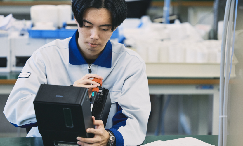 レシートプリンターおよびバーコードプリンターの設計・評価を担当しています。設計では、「こんなプリンターがあったら便利」というお客様の要望をもとに、CADを用いて2D・3D図面を作成し、さまざまな部品を手配し試作品を組み立てます。評価では、試作品が設計通りに動作するか、使い勝手や耐久性に問題がないかなどを確認します。時には中国の生産工場に出張し、現地での組立や品質確認を行うこともあります。現在は新製品の機械設計を任され、製品の構想設計から量産立ち上げまで幅広い業務に携わっています。ものづくりの現場での経験を活かし、お客様の役に立つ製品を届けるために日々挑戦を続けています。