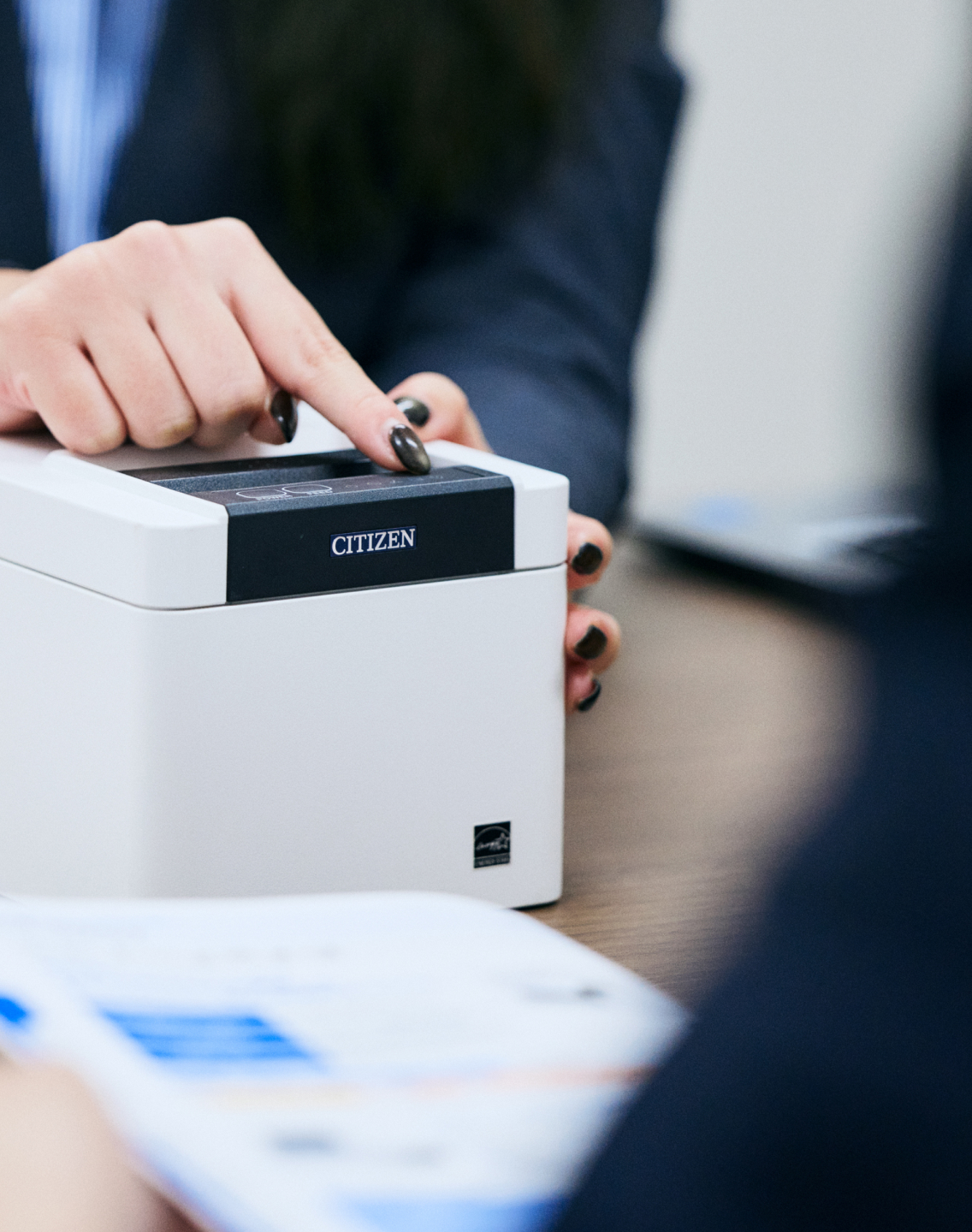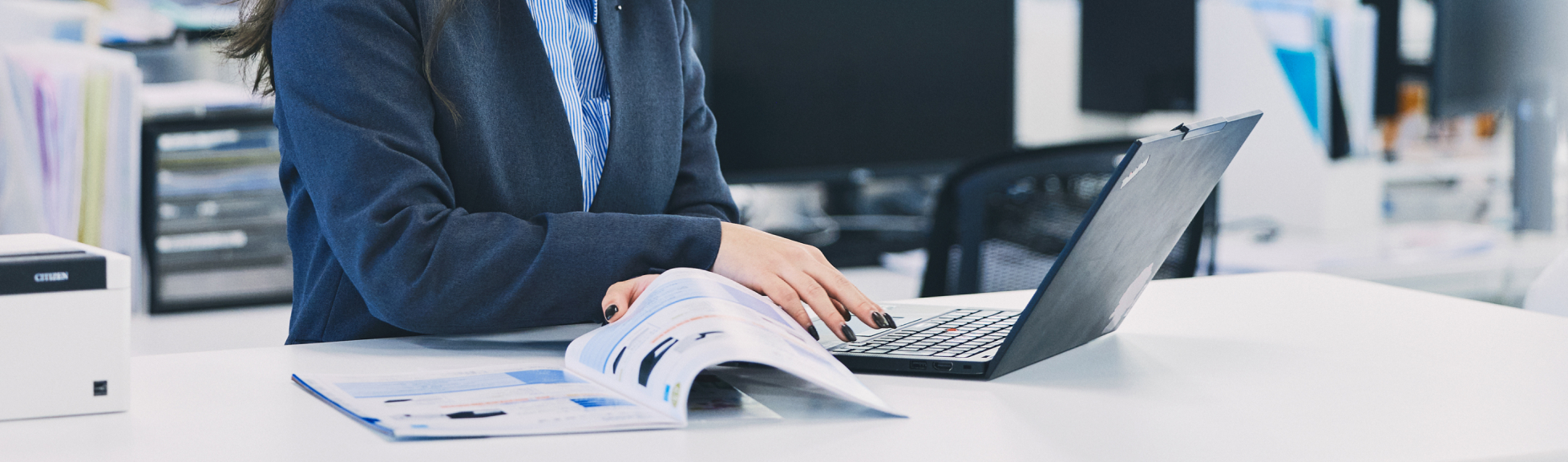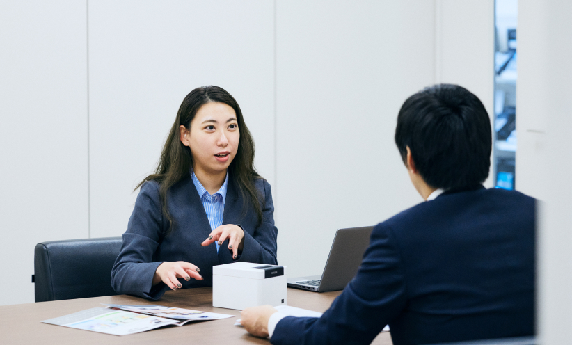 国内の大手プリンター販売代理店やPOSメーカー※1、商社などを相手にシチズン製プリンターの勉強会の実施や施策立案・実行、エンドユーザー対応、新規案件の開拓などを行っています。業務用プリンターは、飲食店やスーパーマーケットで見かけるレシートや商品ラベルなど日常の多くの場面で使用される一方、普段は意識されにくい存在です。しかし、だからこそ多様な業種・現場で課題解決につながる提案の余地が大きいと感じています。現在はプリンター営業のプロフェッショナルを目指し、製品理解を深めながらお客様の課題を的確に捉えた提案に努めています。今後は市場動向の調査やお客様の声の社内フィードバックを強化し、日本のみならず海外でも通用する製品の拡販に貢献したいと考えています。