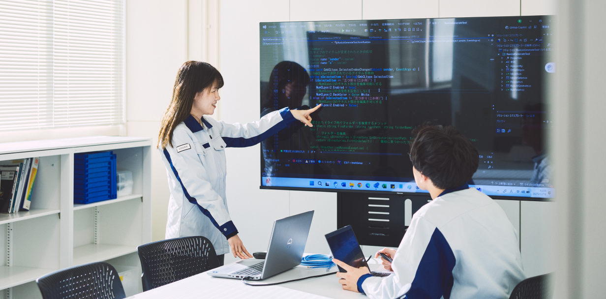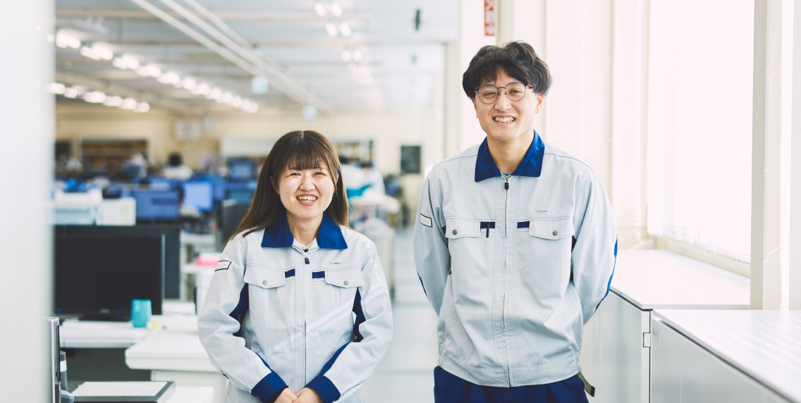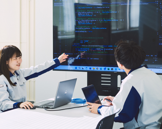 M.S.さんは同じ部署の先輩で、普段から一緒に仕事をすることが多いです。仕事で悩んだ時には真っ先に相談に行く存在で、いつも穏やかに話を聞いてくださるため、とても話しかけやすく頼りにしています。内定式で初めてお会いした時から、笑顔で親しみやすい印象は変わらず、配属後も展示会やセミナーに積極的に参加するなど、仕事に真摯に向き合う姿が印象的でした。現在は多くの業務を任されながらも落ち着いて対応し、ソフトウェア設計以外の場面でも部内外から頼られる存在です。そんな仕事に対する姿勢と人柄が信頼につながっているのだと思います。これからもM.S.さんの背中を追いかけながら、同じように周囲から頼られる存在を目指していきたいです。