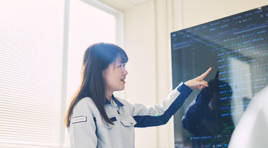 私が最も印象に残っているのは、シチズングループアワードへの取り組みです。このアワードは、グループ全体で「豊かな未来をつなぐ」ことを目的に、社員同士が互いの技術や取り組みを理解し、連携を深めるために設けられた制度です。私たちのチームは、技術の結晶とも言える「新両面機」の開発について発表することになりました。その構造は非常に複雑で、図面や文字だけでは伝わりにくい課題がありました。そこで私は、技術をそのまま説明するのではなく、「誰にでも理解できる形に翻訳する役割」を担うことを決意しました。折り線機構や縦カッター機構の仕組み、小型化を実現した理由、1枚から複数商材を生み出すプロセス複雑な技術要素をすべてイラスト化し、視覚的に理解できる発表資料を作成しました。その結果、技術の価値が直感的に伝わり、発表は高く評価され、チームは大賞を受賞することができました。この経験から、技術は“つくる”だけで完成ではなく、誰かに伝わり、理解されて初めて、人の役に立つ価値になるものだと実感しました。ものづくりの現場で生まれた技術を、より多くの人に届く形へと変換し、チームや会社の価値向上につなげていきたいと考えています。