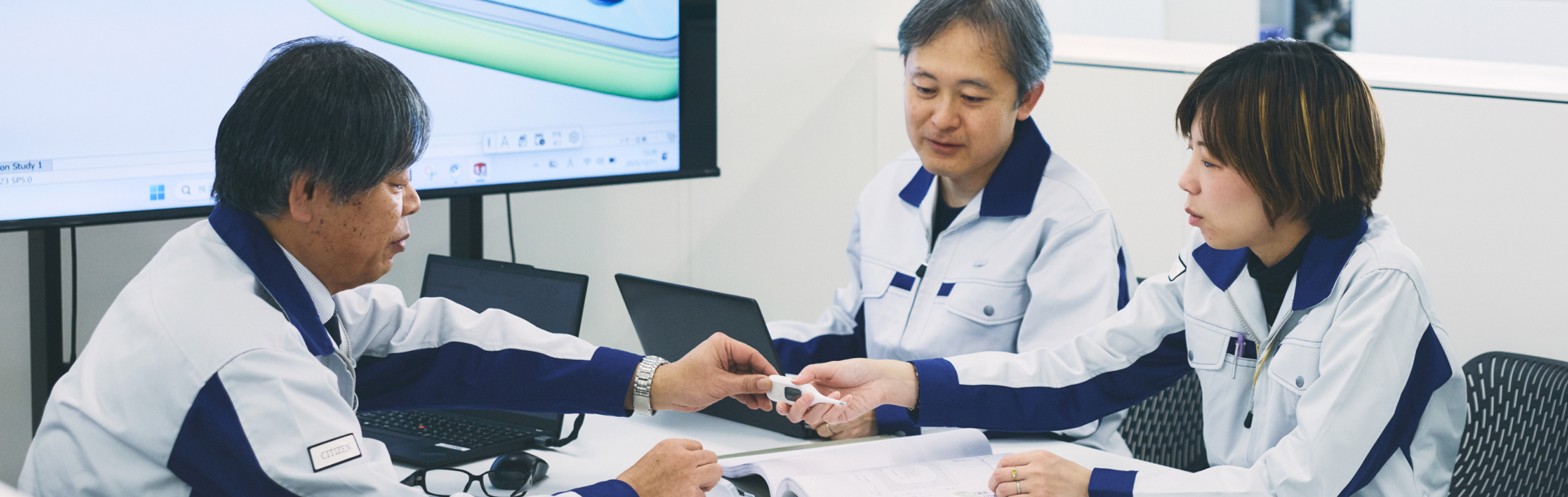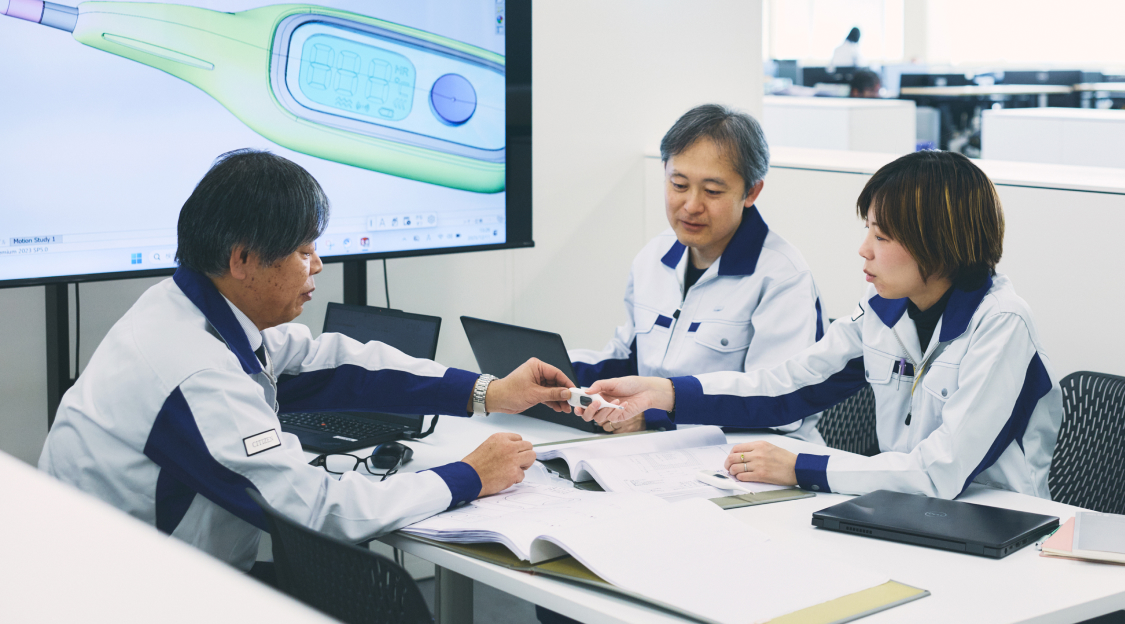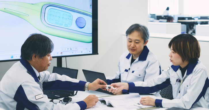 測定完了を音だけでなく振動でも知らせ、わきに挟みやすい構造を備えた「振動体温計」。一度は2013年に販売終了となった初期モデルを改良して再び世に届けようと、2018年に新たなプロジェクトが立ち上がった。のちにシチズン・システムズの主力製品となるこの体温計は、どのようにして開発されたのか。そこには、3人の技術系社員の想いと、幾度もの試行錯誤があった。
